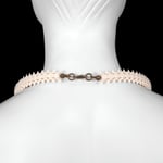 This necklace measures approximately 18" around, and 7" by 10" laid flat. It features a brass lobster claw clasp.